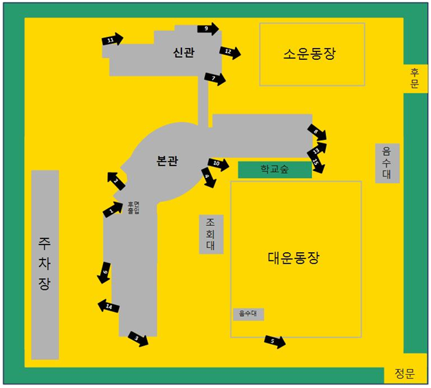 - 촬영범위 및 시간 : 교사 밖 교정 내, 24시간
